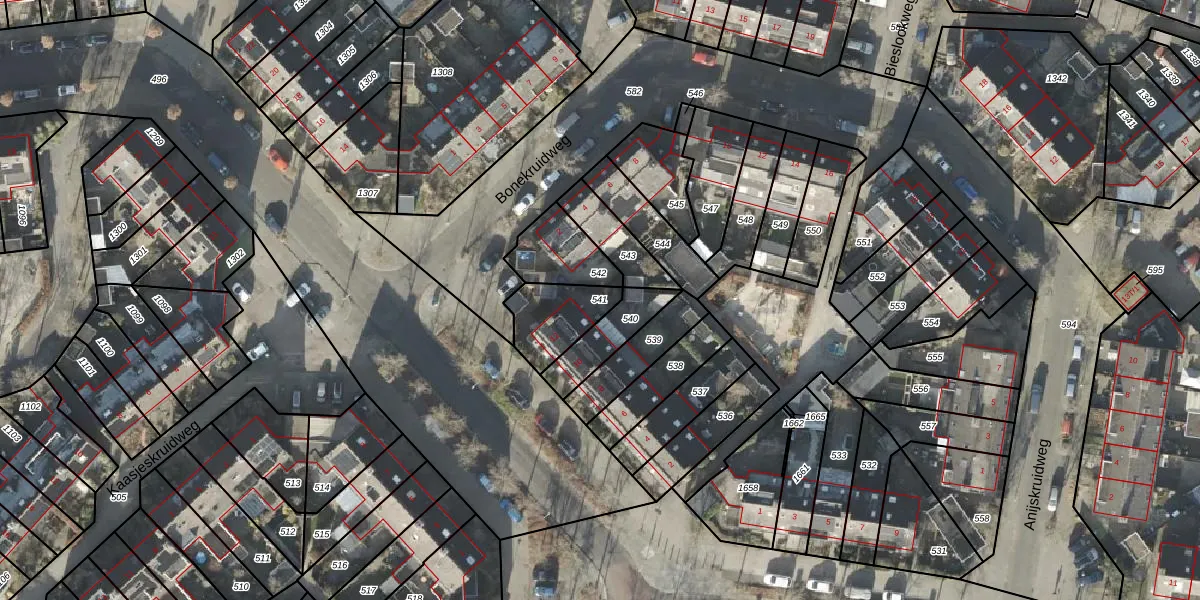 Gebruik de zoekbalk of klik op een perceel om informatie over het perceel te bekijken.