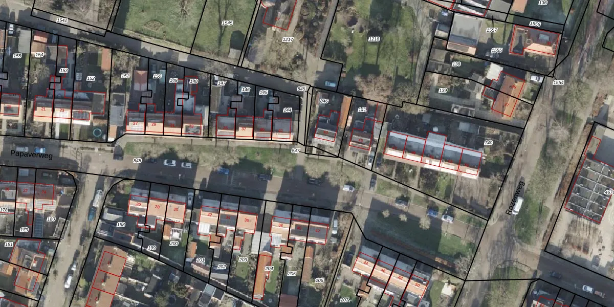 Gebruik de zoekbalk of klik op een perceel om informatie over het perceel te bekijken.
