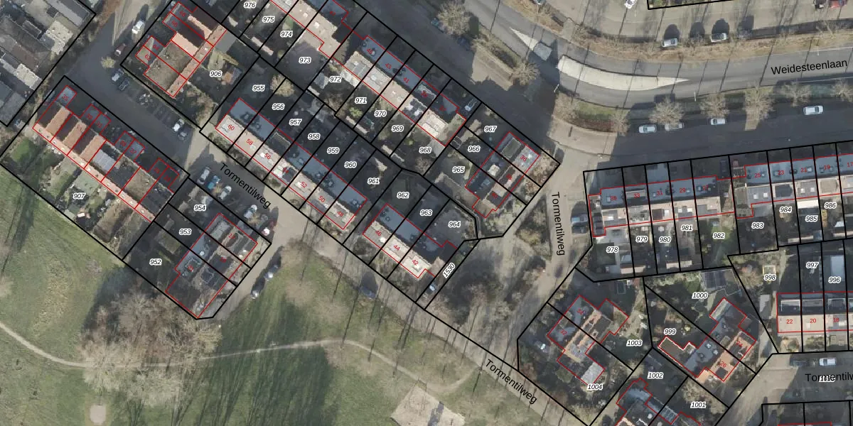 Gebruik de zoekbalk of klik op een perceel om informatie over het perceel te bekijken.