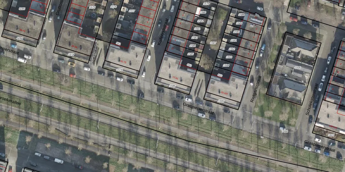 Gebruik de zoekbalk of klik op een perceel om informatie over het perceel te bekijken.