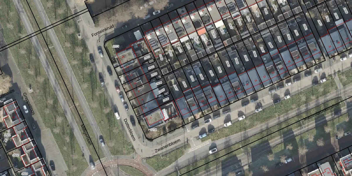 Gebruik de zoekbalk of klik op een perceel om informatie over het perceel te bekijken.