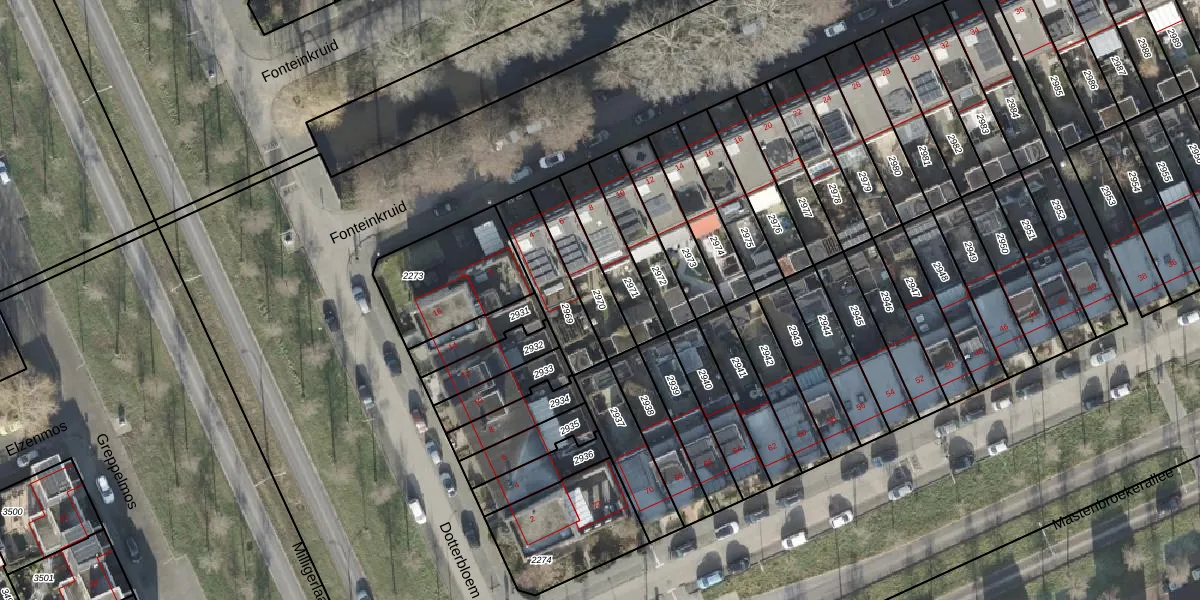 Gebruik de zoekbalk of klik op een perceel om informatie over het perceel te bekijken.