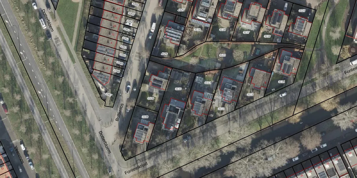 Gebruik de zoekbalk of klik op een perceel om informatie over het perceel te bekijken.