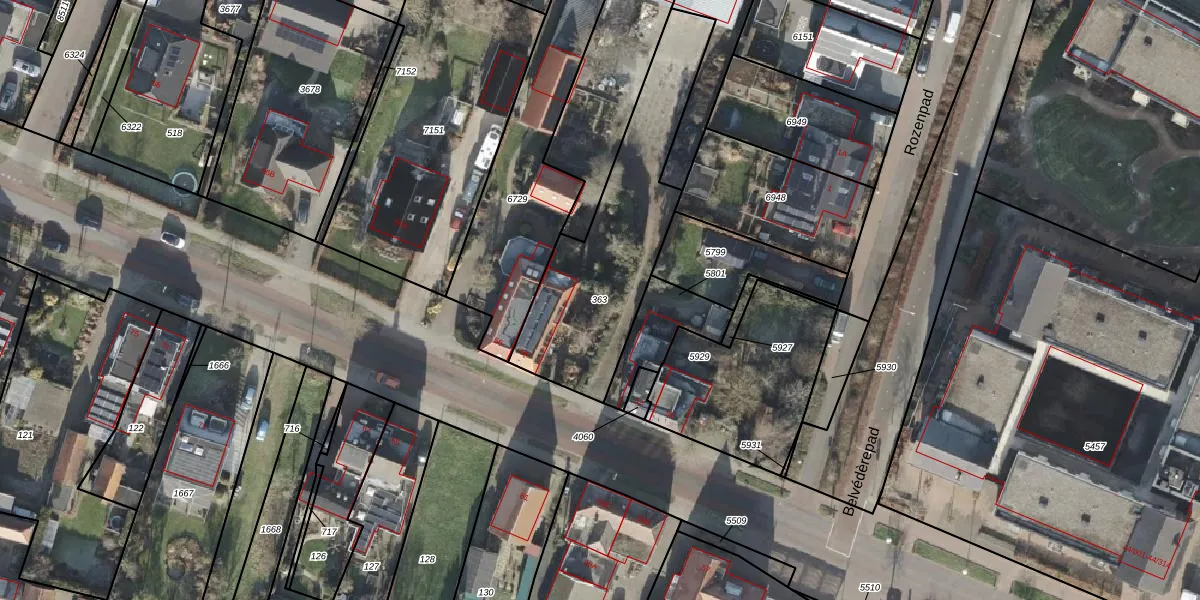 Gebruik de zoekbalk of klik op een perceel om informatie over het perceel te bekijken.