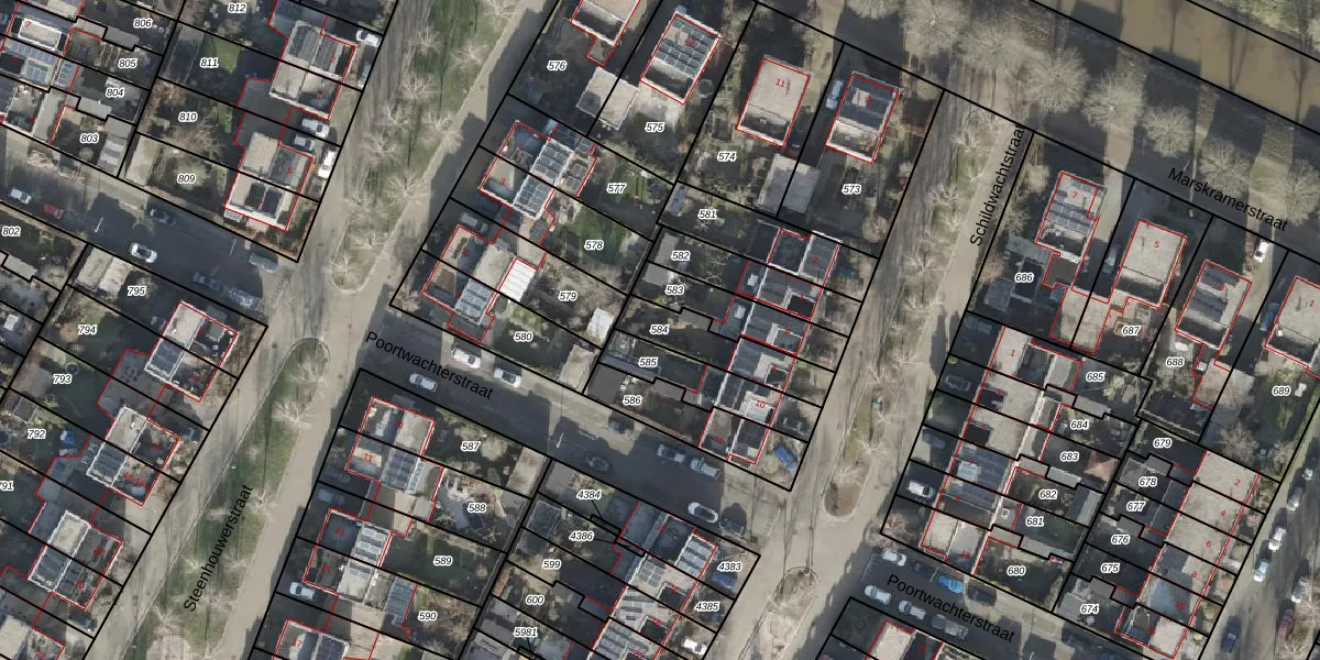 Gebruik de zoekbalk of klik op een perceel om informatie over het perceel te bekijken.