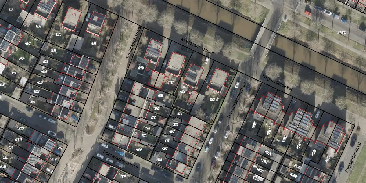 Gebruik de zoekbalk of klik op een perceel om informatie over het perceel te bekijken.