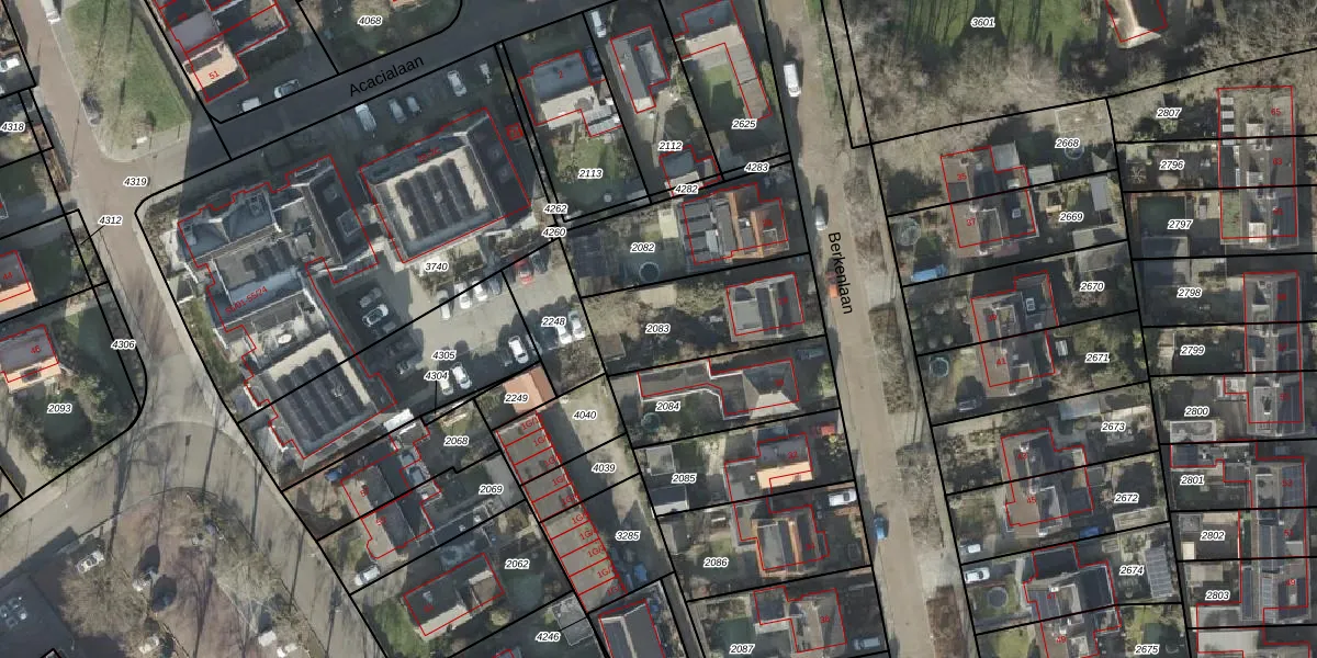 Gebruik de zoekbalk of klik op een perceel om informatie over het perceel te bekijken.