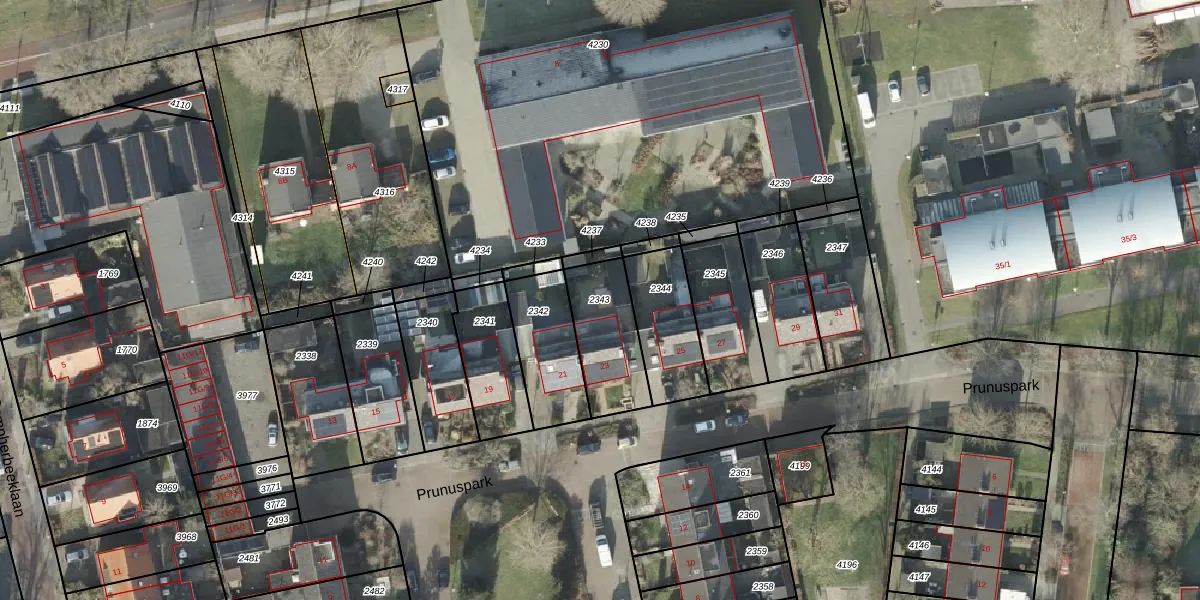 Gebruik de zoekbalk of klik op een perceel om informatie over het perceel te bekijken.