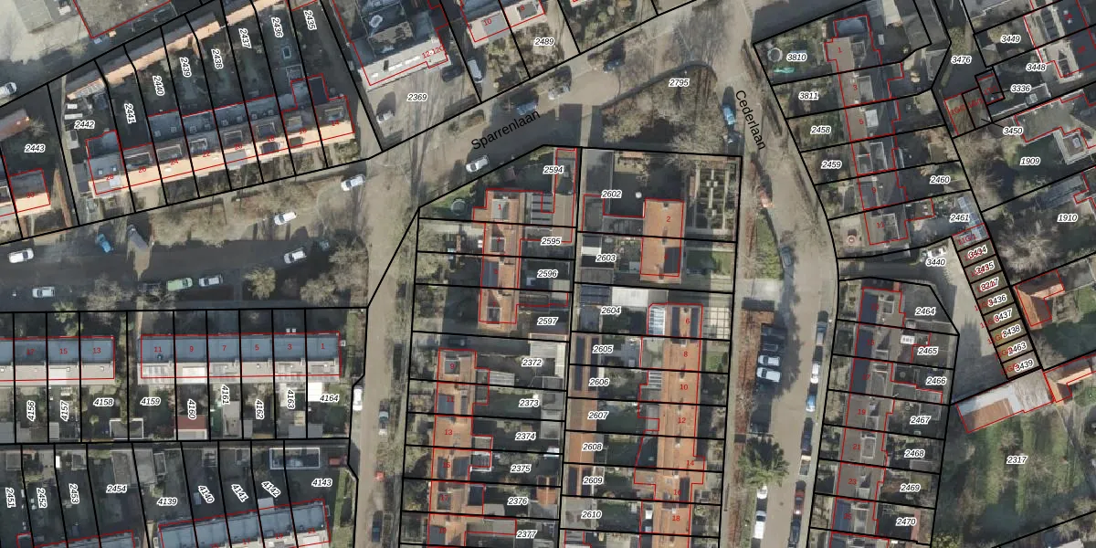 Gebruik de zoekbalk of klik op een perceel om informatie over het perceel te bekijken.