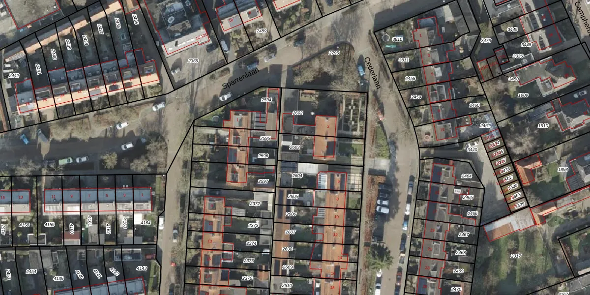 Gebruik de zoekbalk of klik op een perceel om informatie over het perceel te bekijken.