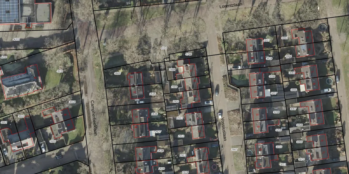 Gebruik de zoekbalk of klik op een perceel om informatie over het perceel te bekijken.