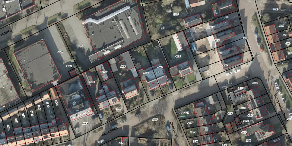 Gebruik de zoekbalk of klik op een perceel om informatie over het perceel te bekijken.
