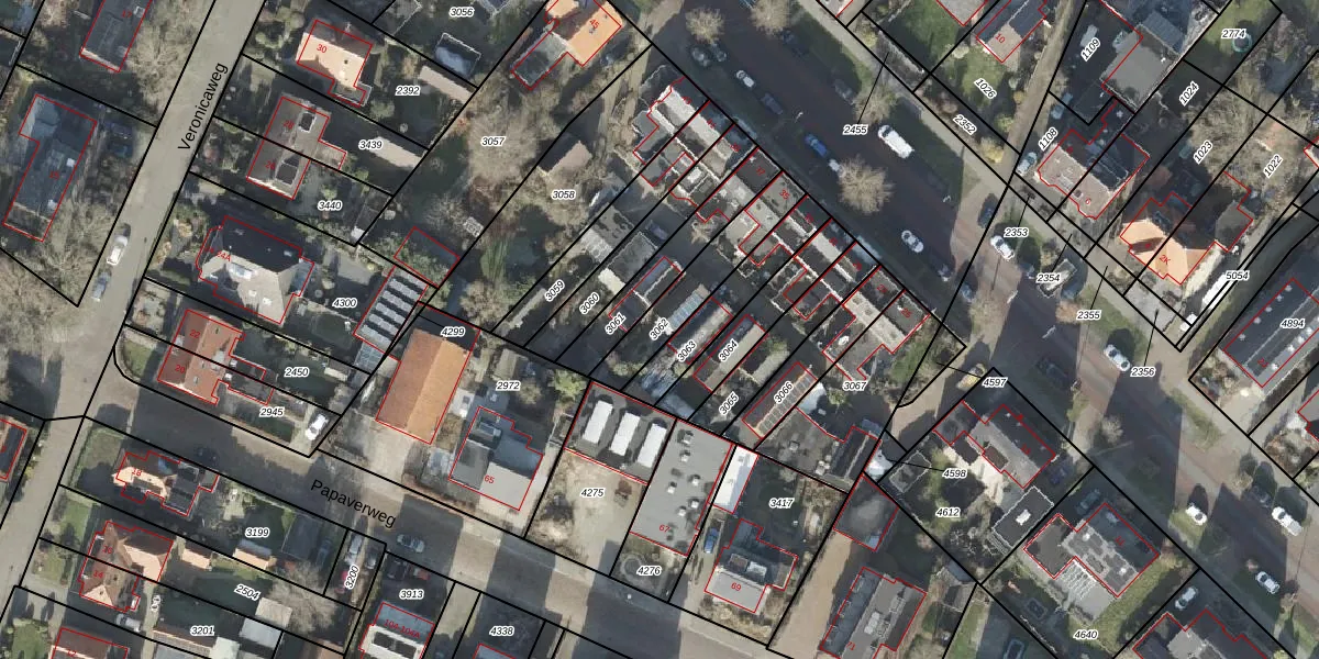 Gebruik de zoekbalk of klik op een perceel om informatie over het perceel te bekijken.