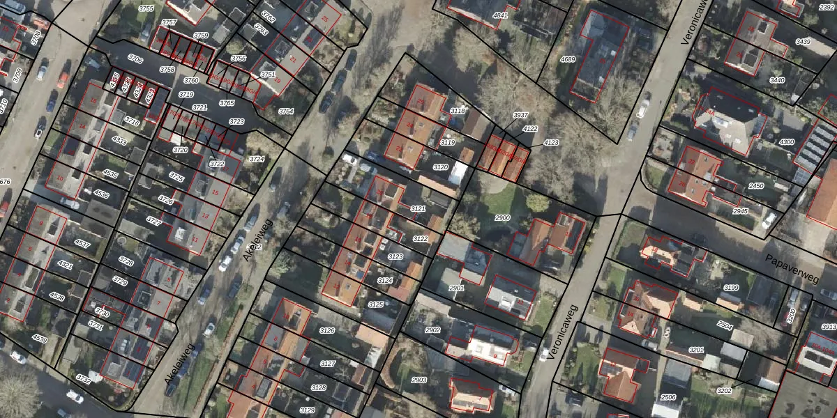 Gebruik de zoekbalk of klik op een perceel om informatie over het perceel te bekijken.