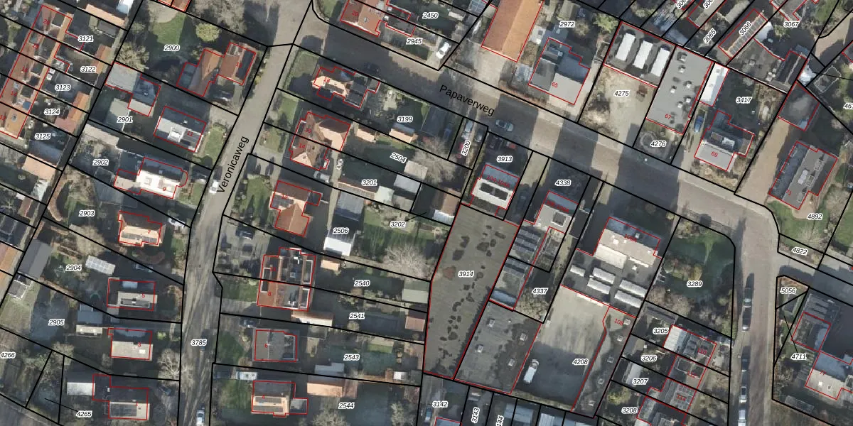 Gebruik de zoekbalk of klik op een perceel om informatie over het perceel te bekijken.