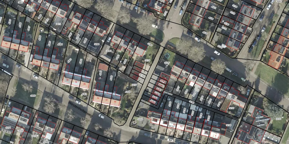 Gebruik de zoekbalk of klik op een perceel om informatie over het perceel te bekijken.