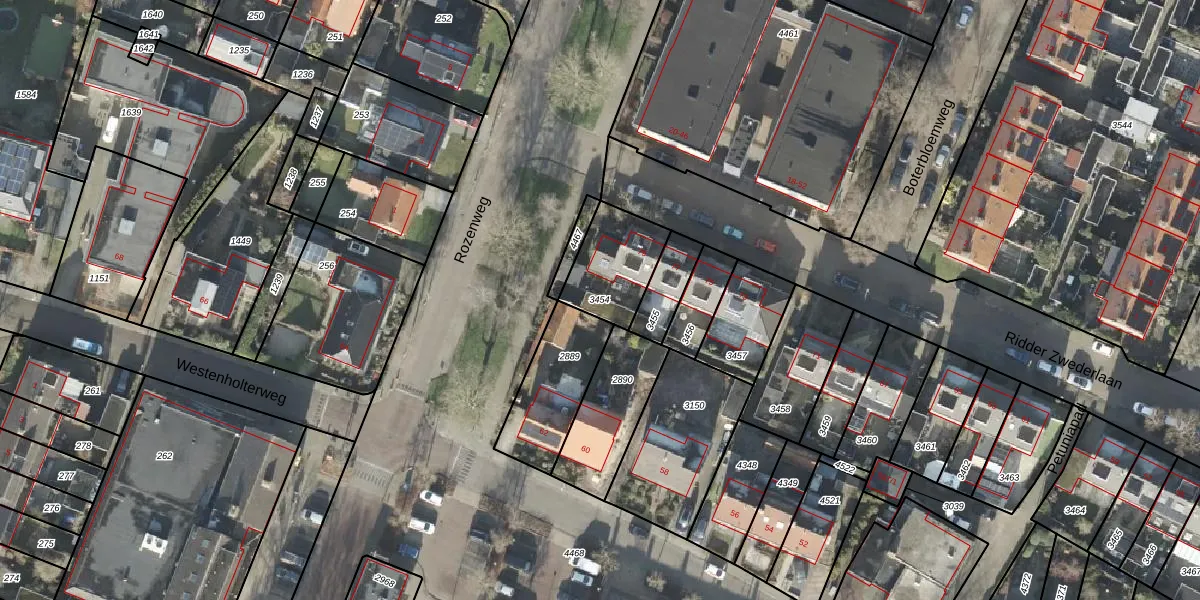 Gebruik de zoekbalk of klik op een perceel om informatie over het perceel te bekijken.