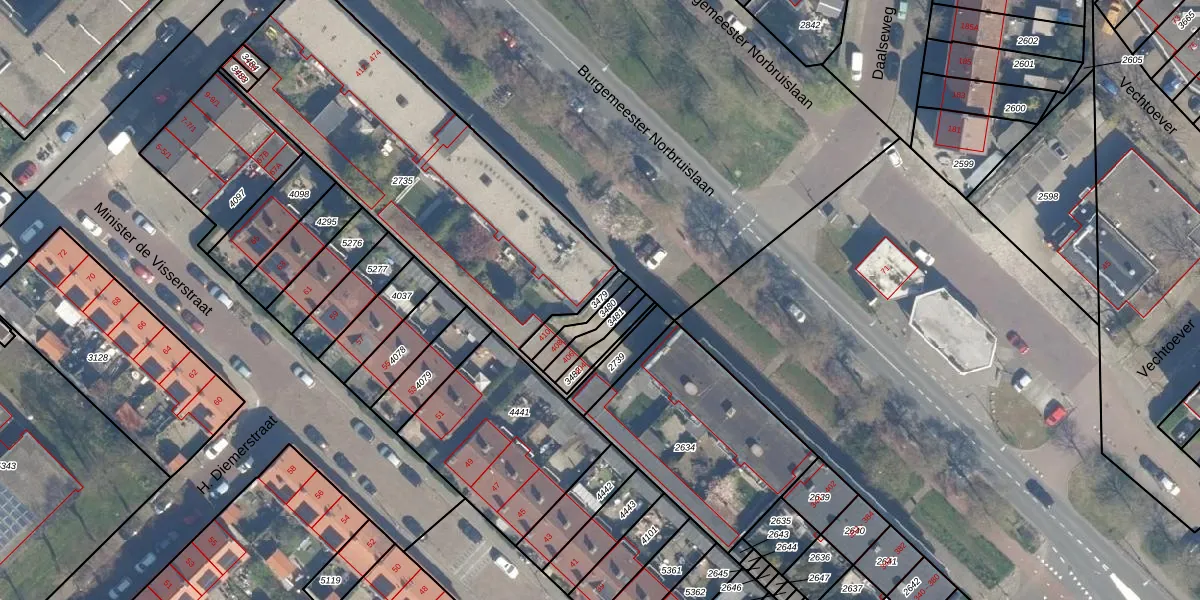 Gebruik de zoekbalk of klik op een perceel om informatie over het perceel te bekijken.