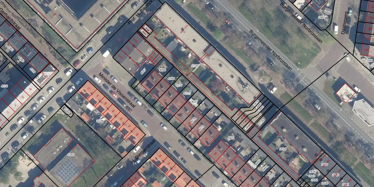 Gebruik de zoekbalk of klik op een perceel om informatie over het perceel te bekijken.