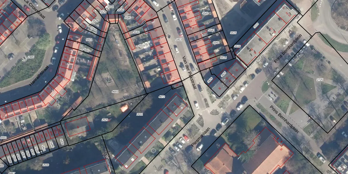 Gebruik de zoekbalk of klik op een perceel om informatie over het perceel te bekijken.