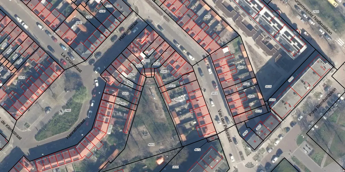 Gebruik de zoekbalk of klik op een perceel om informatie over het perceel te bekijken.