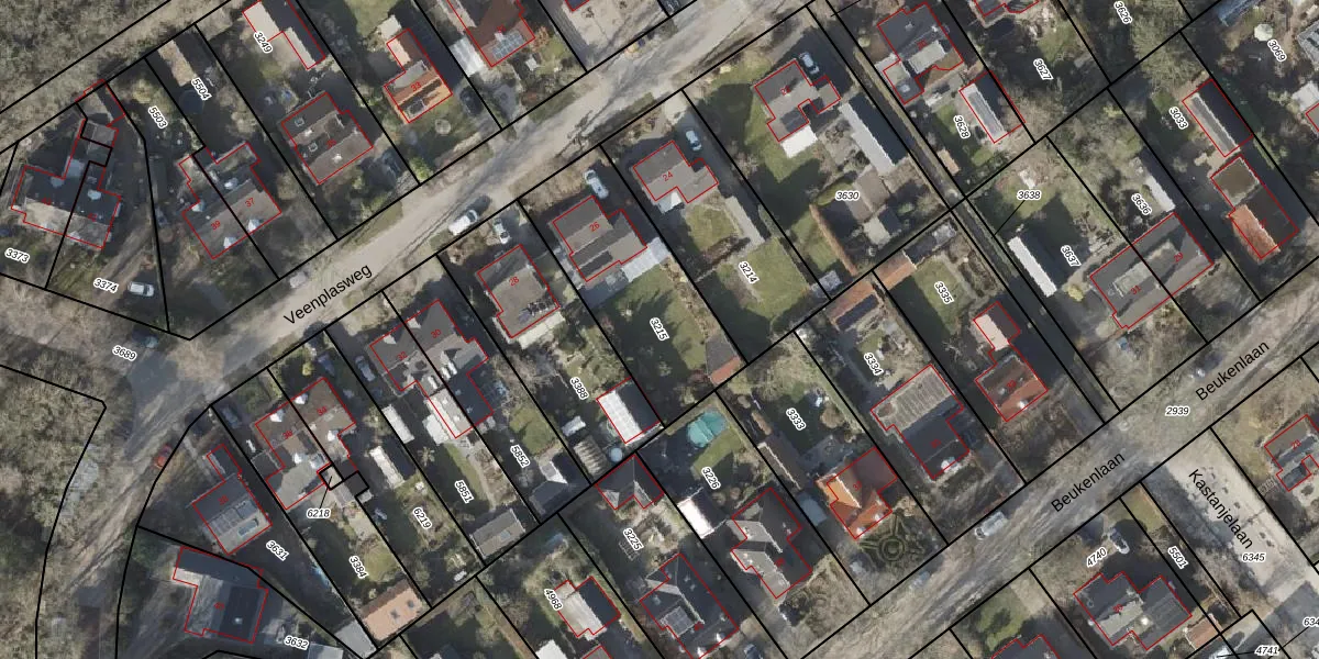 Gebruik de zoekbalk of klik op een perceel om informatie over het perceel te bekijken.