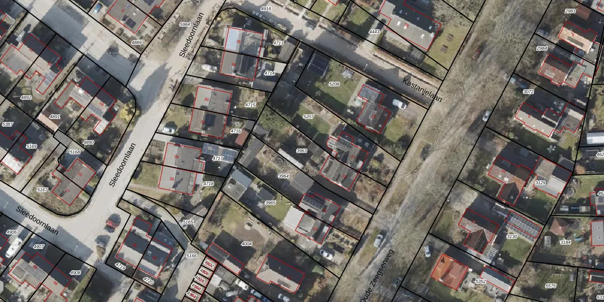 Gebruik de zoekbalk of klik op een perceel om informatie over het perceel te bekijken.
