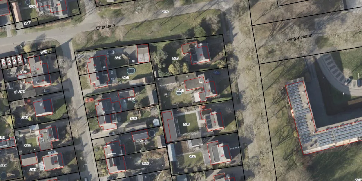 Gebruik de zoekbalk of klik op een perceel om informatie over het perceel te bekijken.