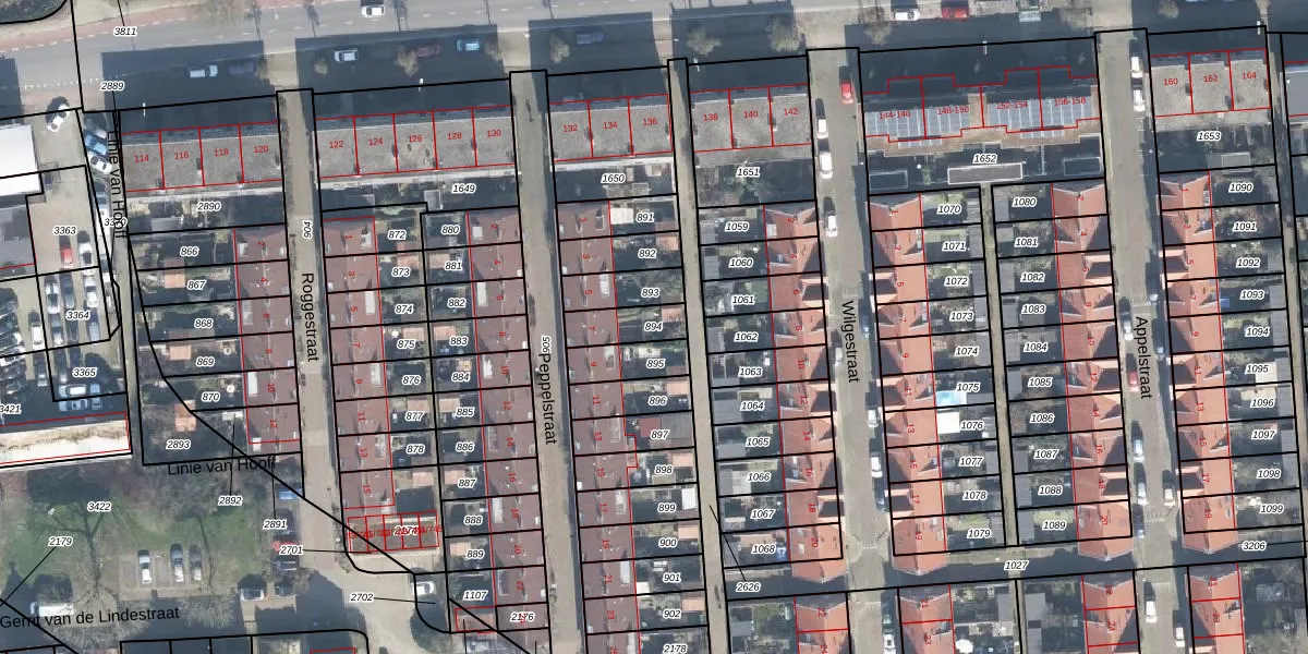 Gebruik de zoekbalk of klik op een perceel om informatie over het perceel te bekijken.