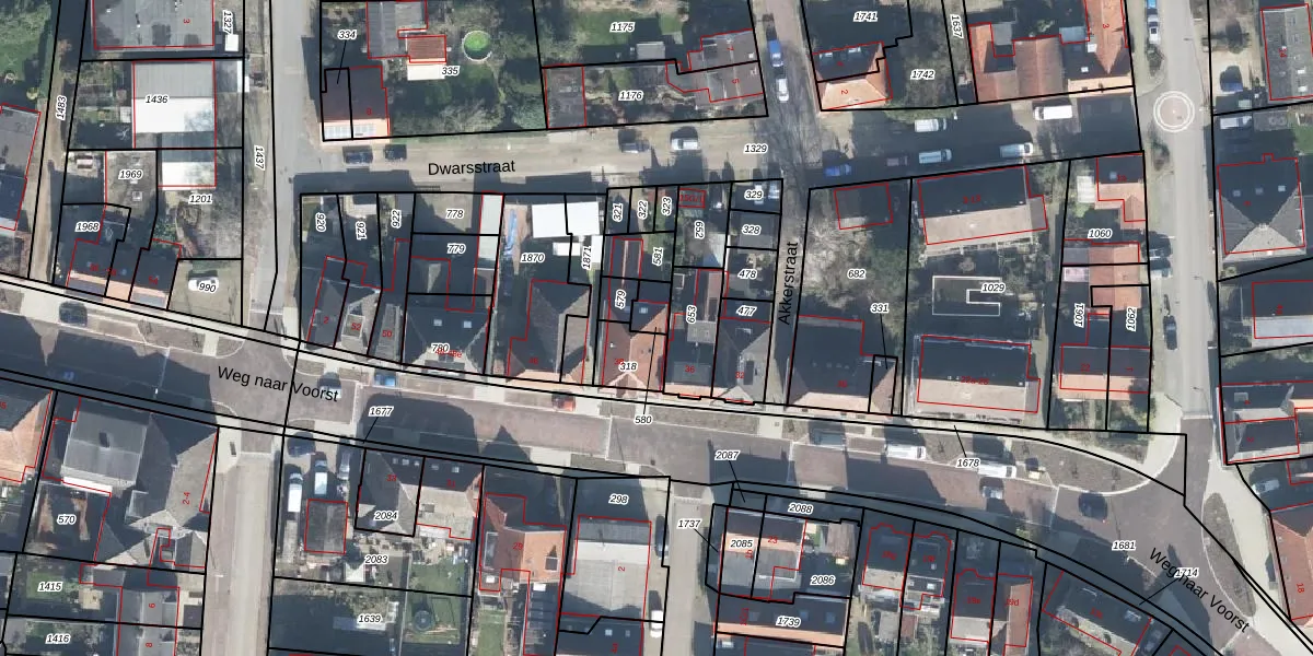 Gebruik de zoekbalk of klik op een perceel om informatie over het perceel te bekijken.