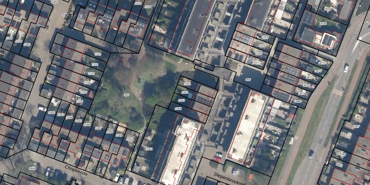 Gebruik de zoekbalk of klik op een perceel om informatie over het perceel te bekijken.