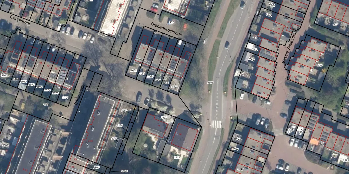 Gebruik de zoekbalk of klik op een perceel om informatie over het perceel te bekijken.