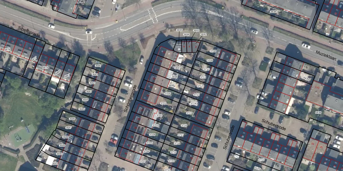 Gebruik de zoekbalk of klik op een perceel om informatie over het perceel te bekijken.