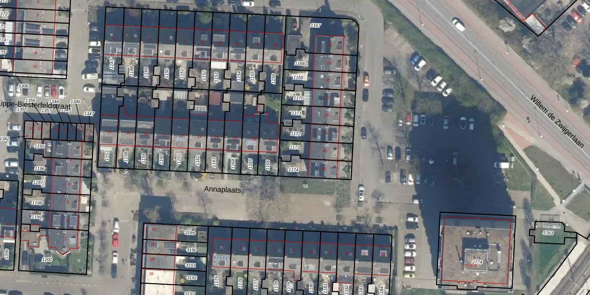 Gebruik de zoekbalk of klik op een perceel om informatie over het perceel te bekijken.