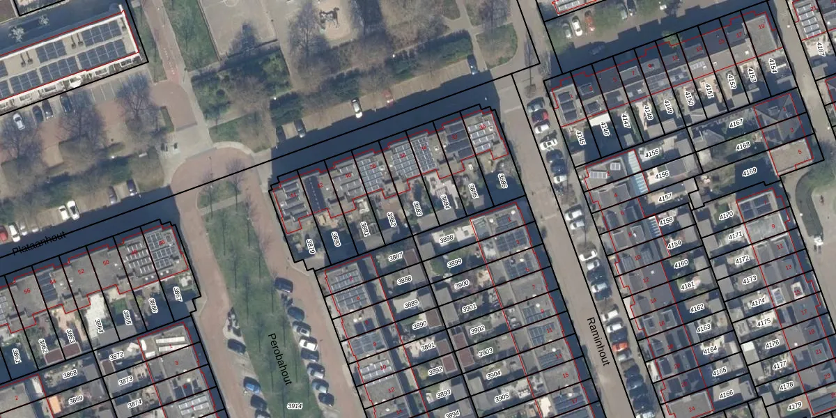 Gebruik de zoekbalk of klik op een perceel om informatie over het perceel te bekijken.