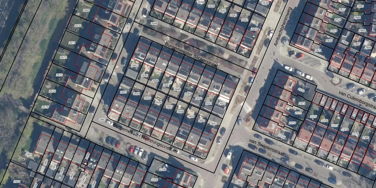 Gebruik de zoekbalk of klik op een perceel om informatie over het perceel te bekijken.