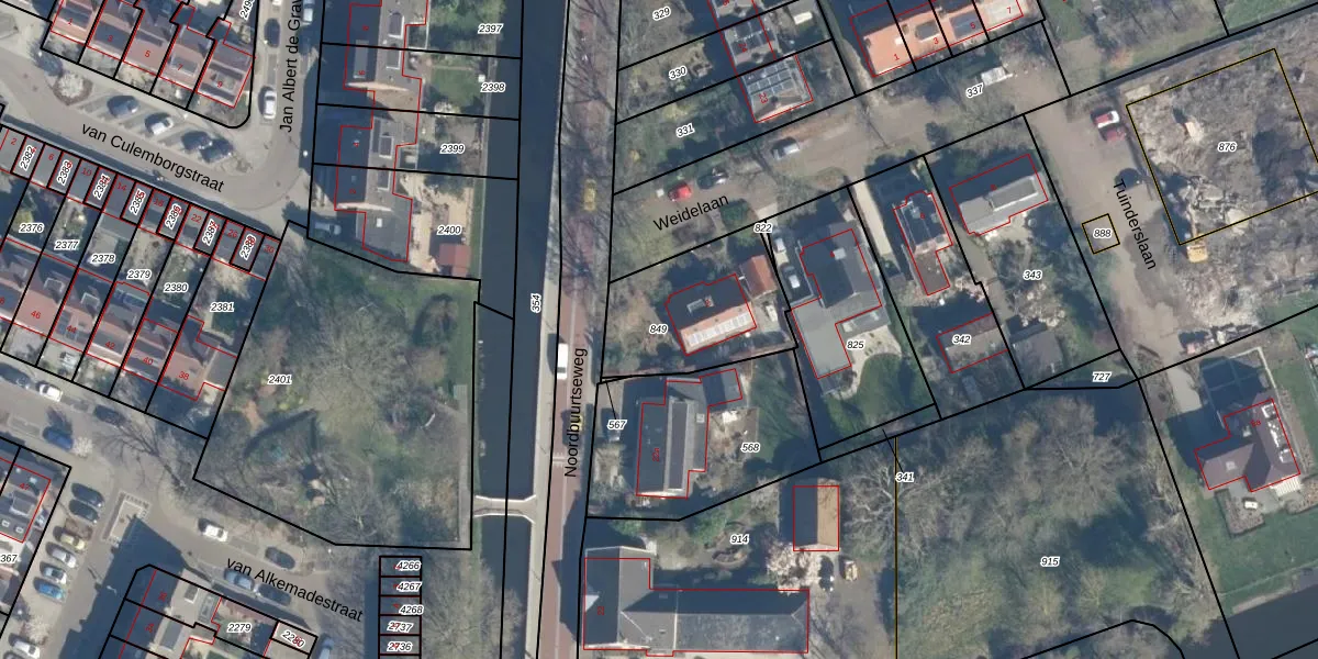 Gebruik de zoekbalk of klik op een perceel om informatie over het perceel te bekijken.