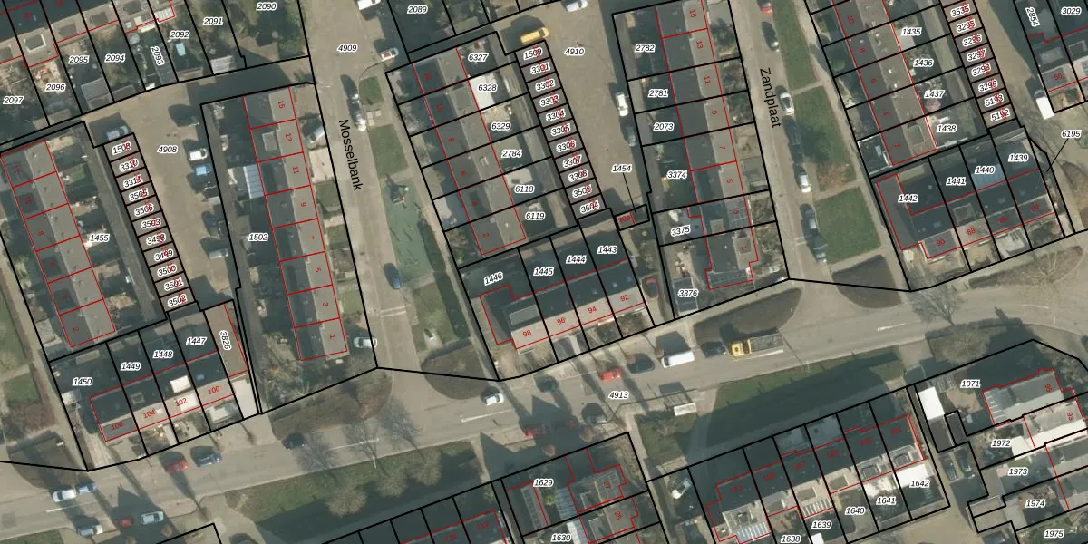 Gebruik de zoekbalk of klik op een perceel om informatie over het perceel te bekijken.