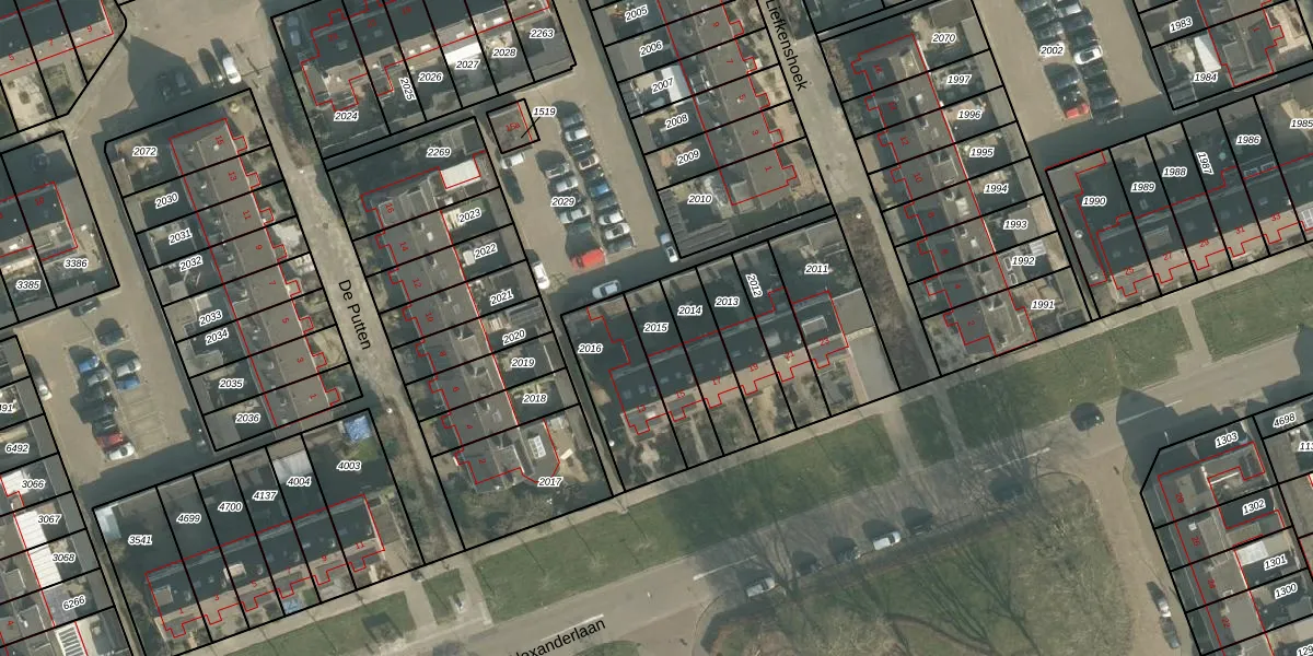 Gebruik de zoekbalk of klik op een perceel om informatie over het perceel te bekijken.