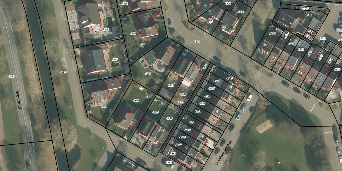 Gebruik de zoekbalk of klik op een perceel om informatie over het perceel te bekijken.