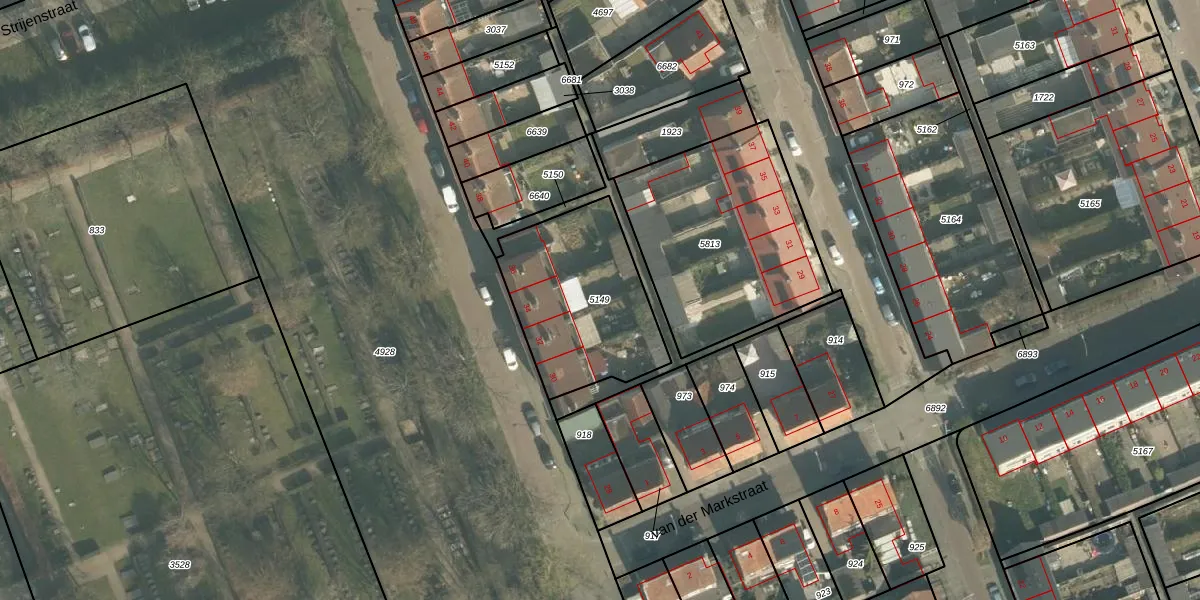 Gebruik de zoekbalk of klik op een perceel om informatie over het perceel te bekijken.