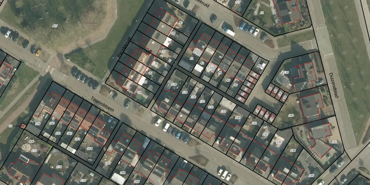 Gebruik de zoekbalk of klik op een perceel om informatie over het perceel te bekijken.