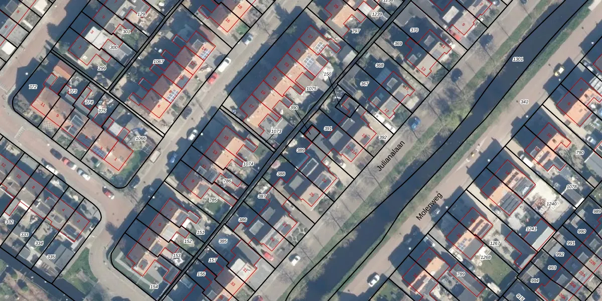 Gebruik de zoekbalk of klik op een perceel om informatie over het perceel te bekijken.