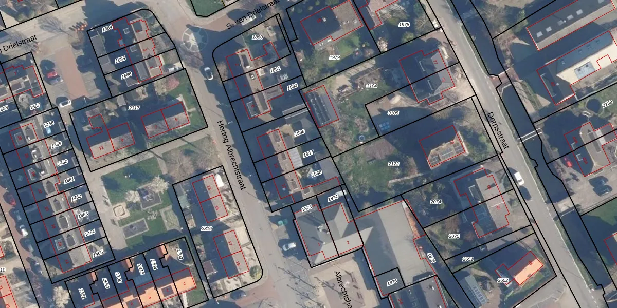 Gebruik de zoekbalk of klik op een perceel om informatie over het perceel te bekijken.