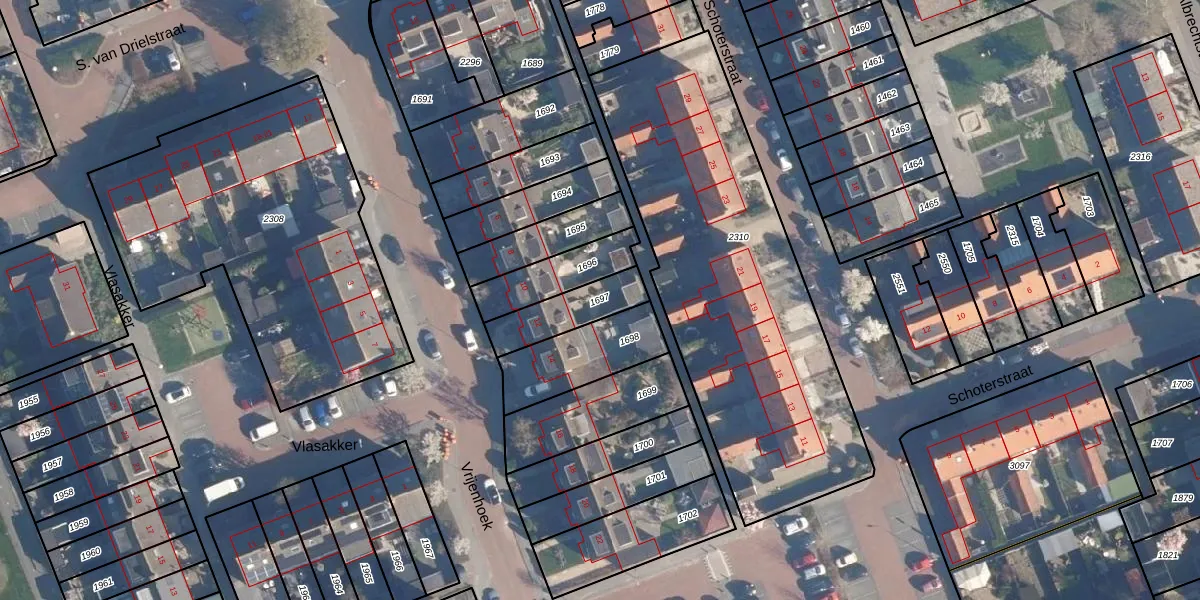 Gebruik de zoekbalk of klik op een perceel om informatie over het perceel te bekijken.