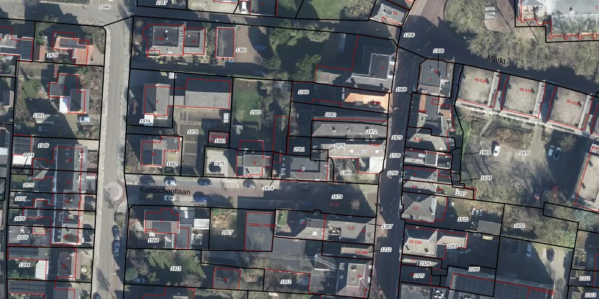 Gebruik de zoekbalk of klik op een perceel om informatie over het perceel te bekijken.
