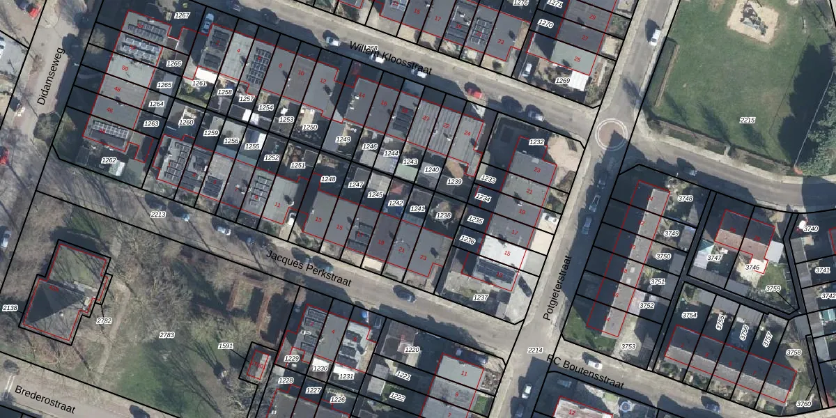 Gebruik de zoekbalk of klik op een perceel om informatie over het perceel te bekijken.