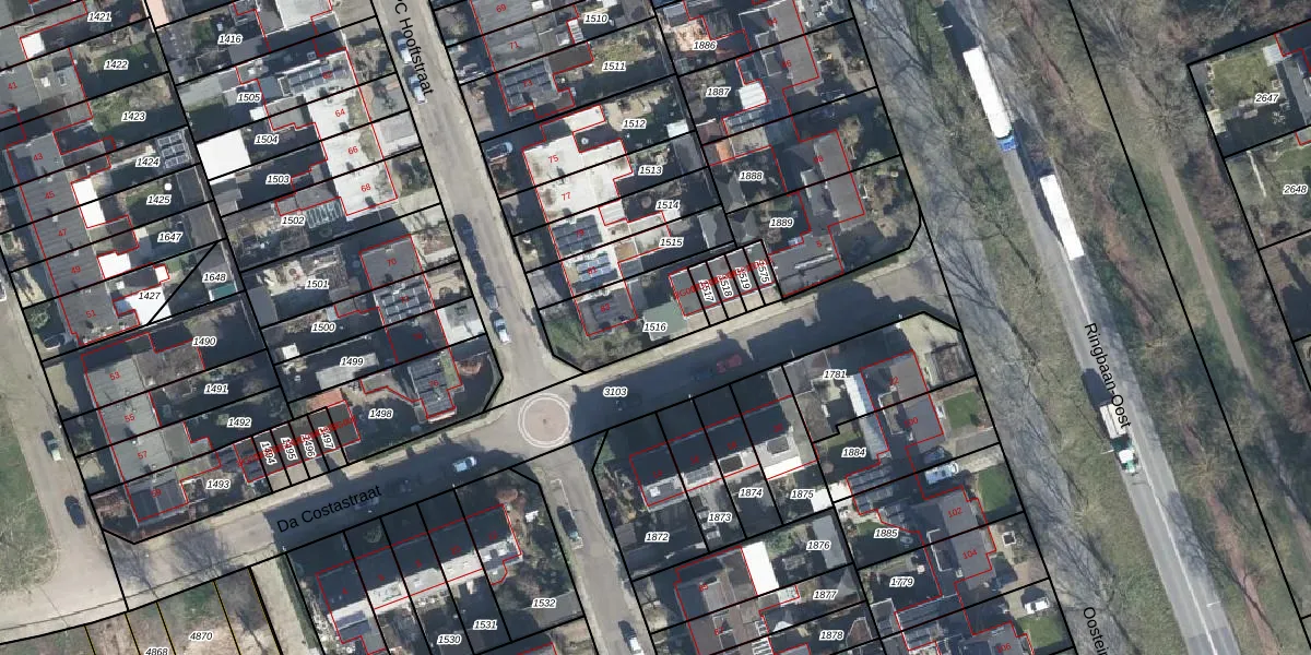 Gebruik de zoekbalk of klik op een perceel om informatie over het perceel te bekijken.
