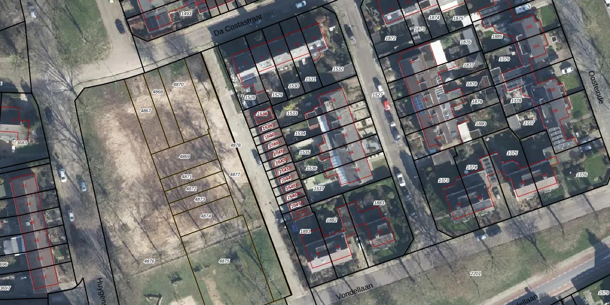 Gebruik de zoekbalk of klik op een perceel om informatie over het perceel te bekijken.