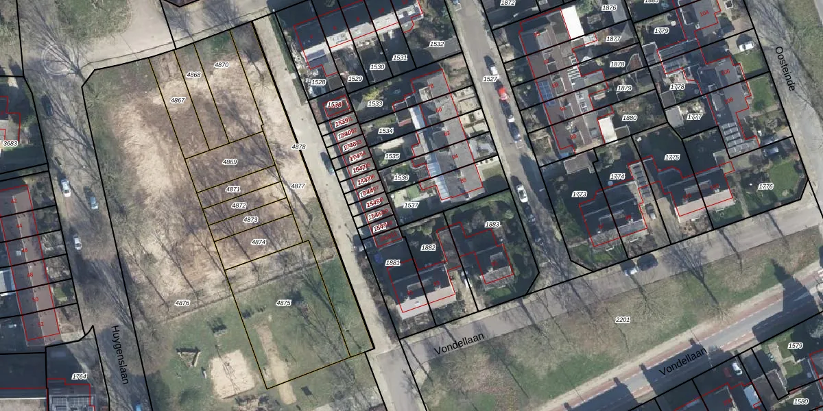 Gebruik de zoekbalk of klik op een perceel om informatie over het perceel te bekijken.